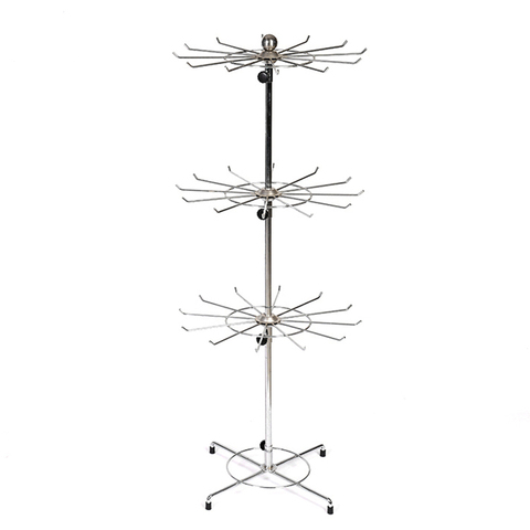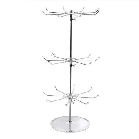 ชั้นวางโลหะหมุนได้3ชั้น,ชั้นวางแสดงเครื่องประดับลวดแขวนพื้นปรับความสูงได้